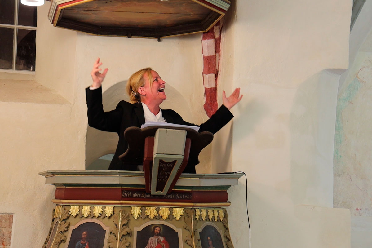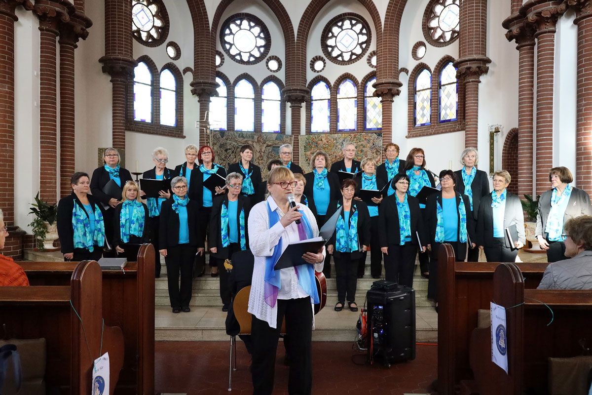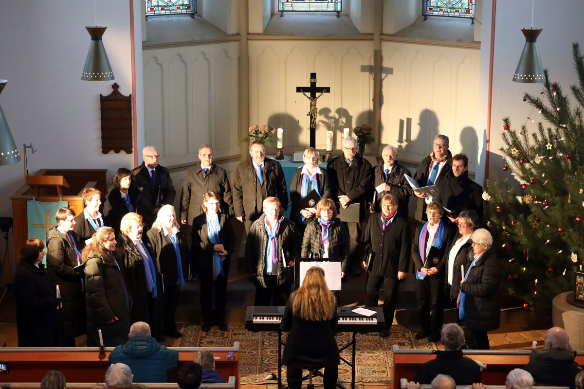 Die musikalische Leitung und das Spielen der Orgel übernahm unsere Chorleiterin Irma Heistermann. Als zusätzliche Überraschung für das Publikum gab es ein "Kanzel-Solo" von ihr. Außerdem begleitete sie Konstanze Bruns, die zwei Saxophon-Einlagen zum Besten gab, am Keyboard. Die Zuhörer und Zuhörerinnen bedankten sich mit Standing Ovations und einem lang anhaltenden Applaus, so dass wir uns sogar an die erstmalige Darbietung von "Abschied vom Walde" von Felix Mendelssohn Bartholdy wagten.
