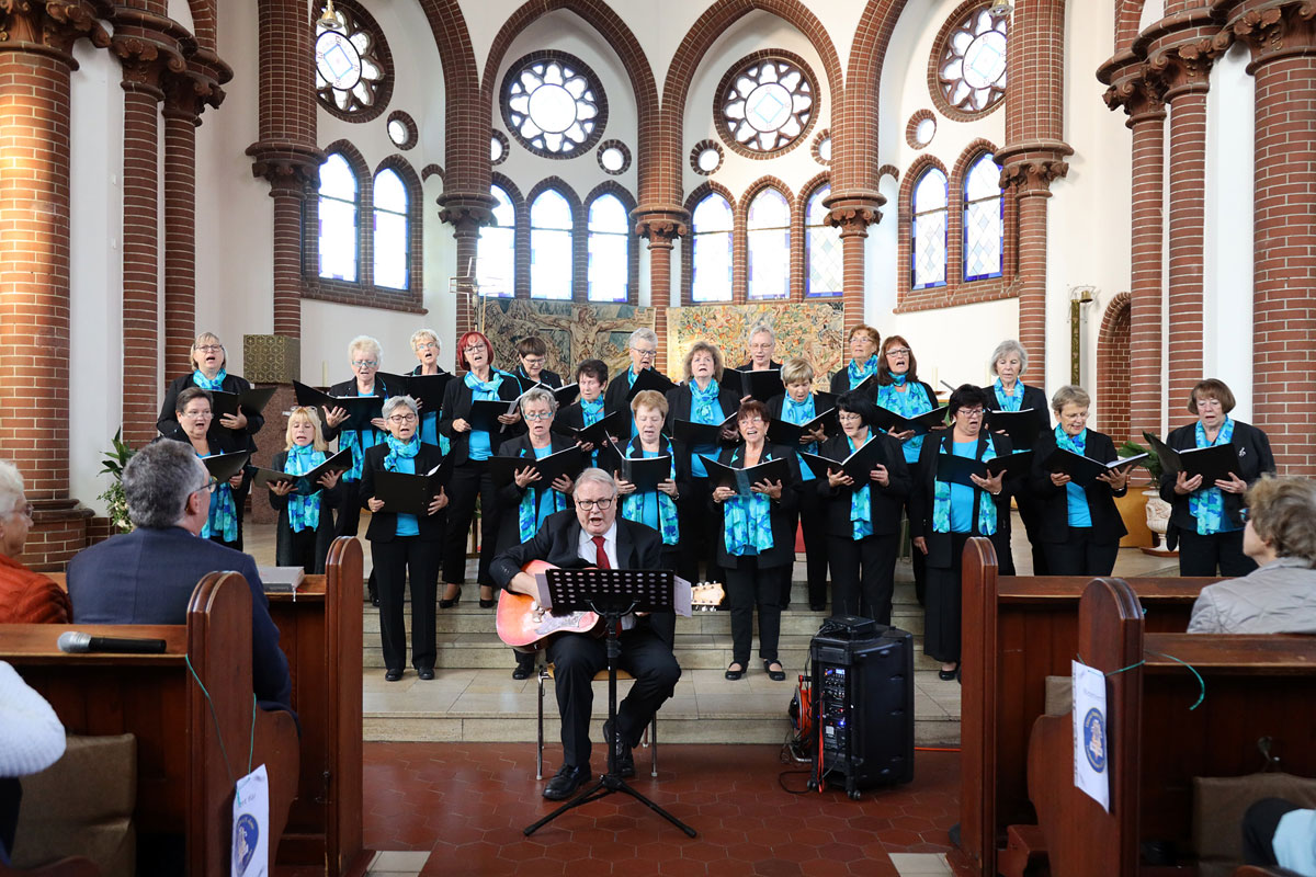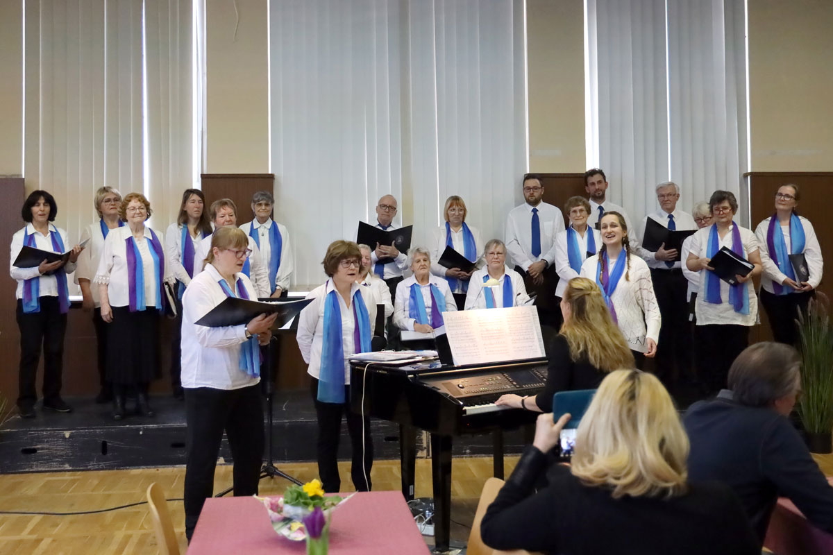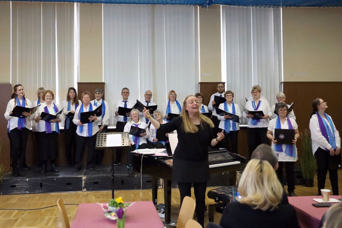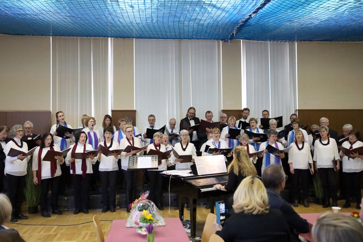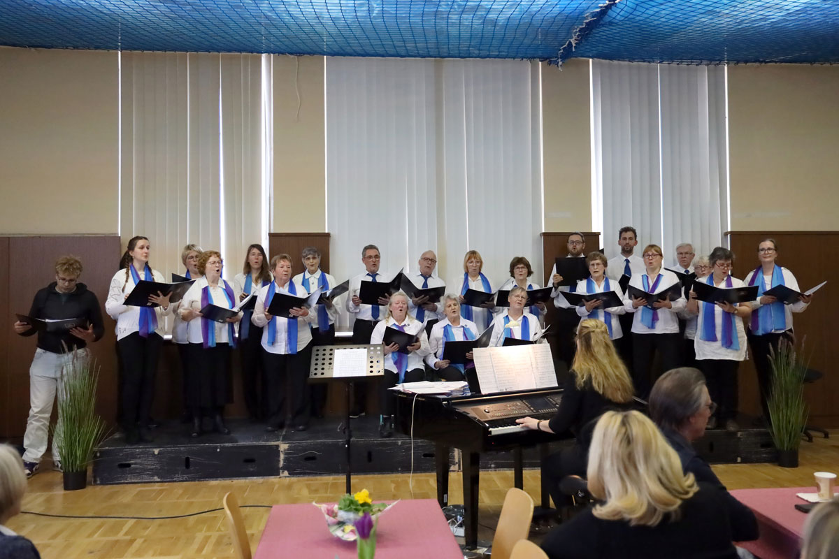 Auf unser Publikum, das wir wie gewohnt mit Kaffee und Kuchen bewirteten, war trotz der langen Corona-Pause Verlass. Wir freuten uns über zahlreiche musikliebende Zuhörer und Zuhörerinnen, darunter Landrätin Kornelia Wehlan. Die (dreieinhalb) Chöre boten einen breiten Strauß an Melodien, für fast jeden Geschmack war sicher etwas dabei.