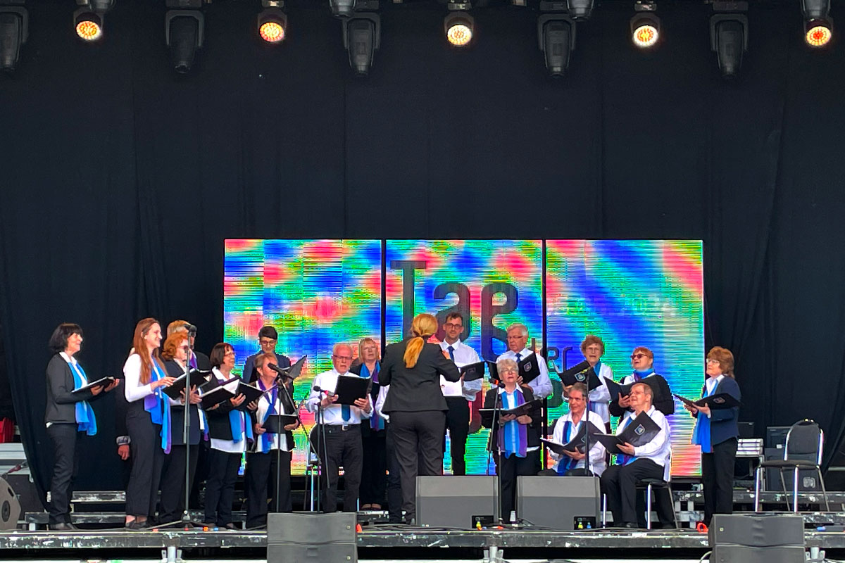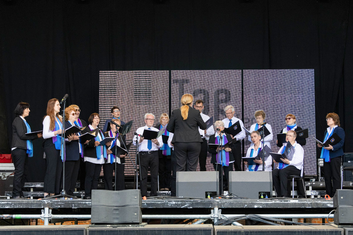 Am 2. Juni 2024 hatte unser Chor einen Auftritt auf der Bühne Boulevard im Rahmen des Luckenwalder Turmfestes.