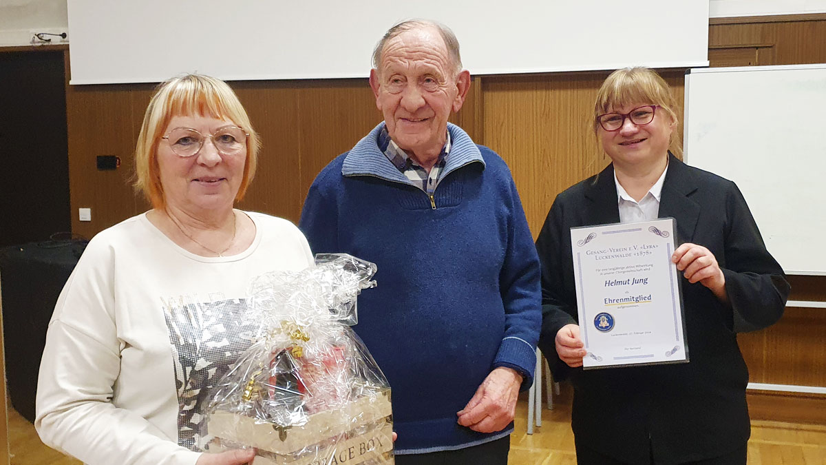 Der Gesang-Verein e.V. „Lyra“ Luckenwalde „1878“ führte am Dienstag, den 25.02.2024 seine Jahreshauptversammlung 2025 mit Wahl des Vorstandes durch. Als Verantwortliche wurden Elvira Engel, Martina Rindt-Adam und Ursula Sauerstein in ihren Funktionen bestätigt.