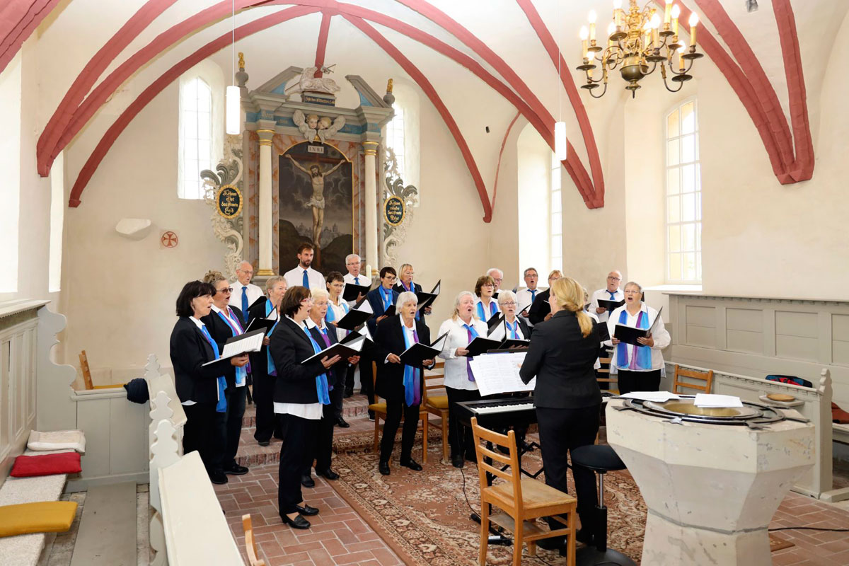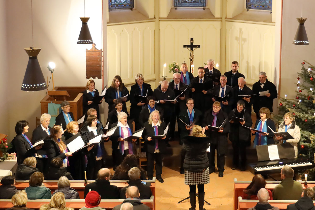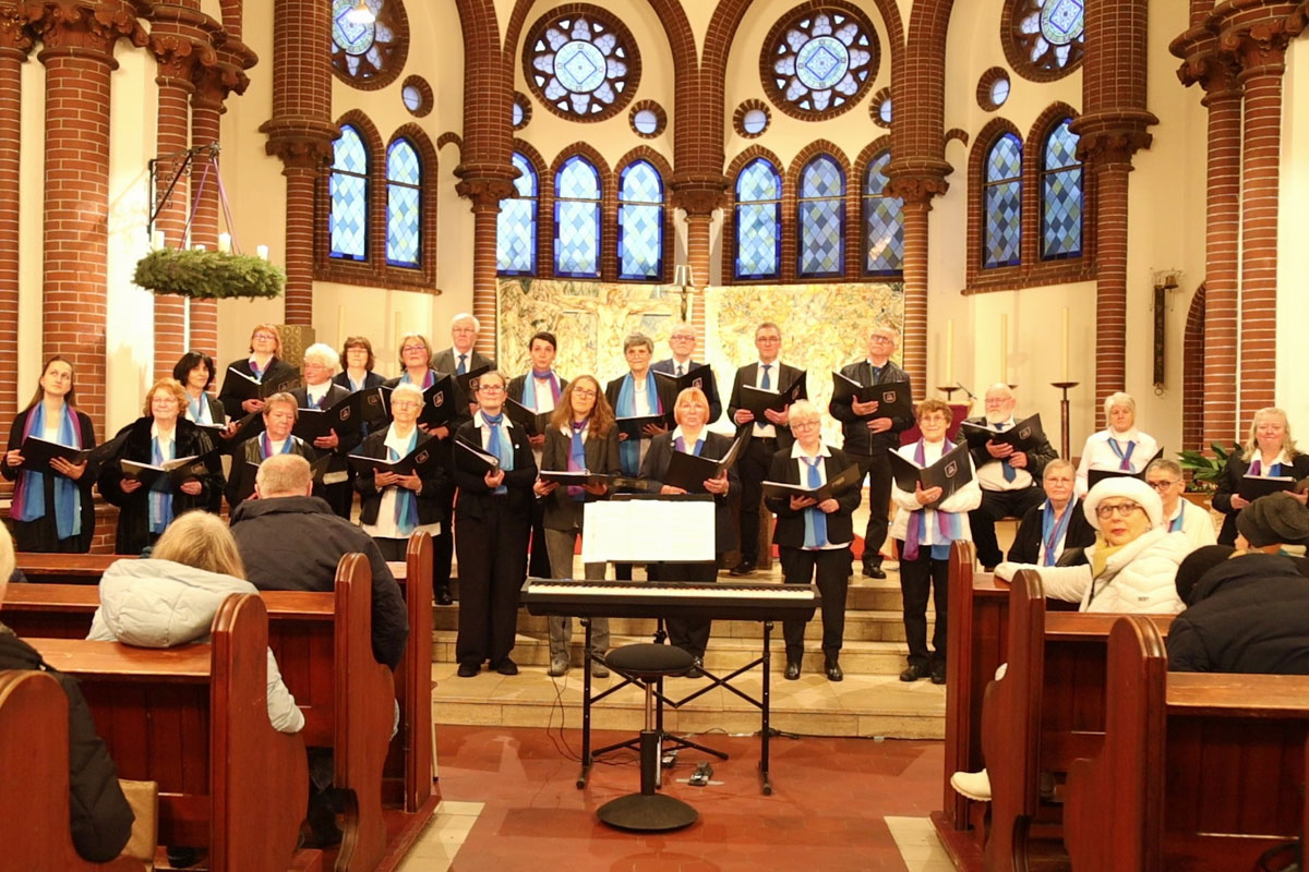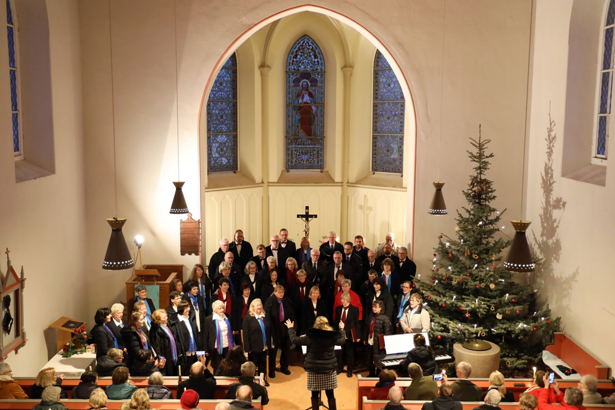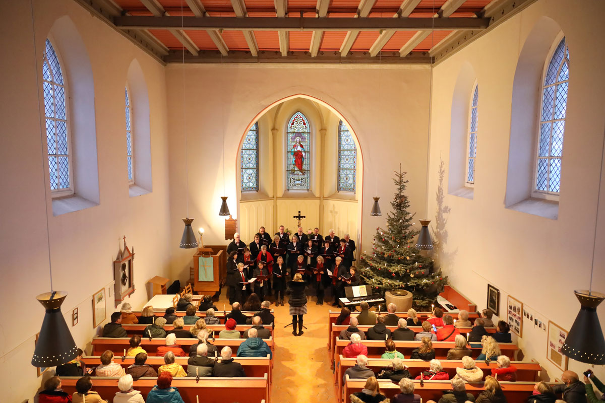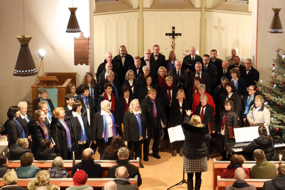 Unser Adventskonzert 2024 am 8. Dezember in der Dorfkirche Hennickendorf (Nuthe-Urstromtal) bot unserem Publikum unter musikalischer Leitung unserer Chorleiterin Irma Heistermann ein festliches und mitreißendes weihnachtliches Programm. Als Gastchor war der Stadtchor Jüterbog dabei, der den ersten Teil des Konzerts bestritt und am Ende für zwei gemeinsame Lieder auf die Bühne zurückkehrte.