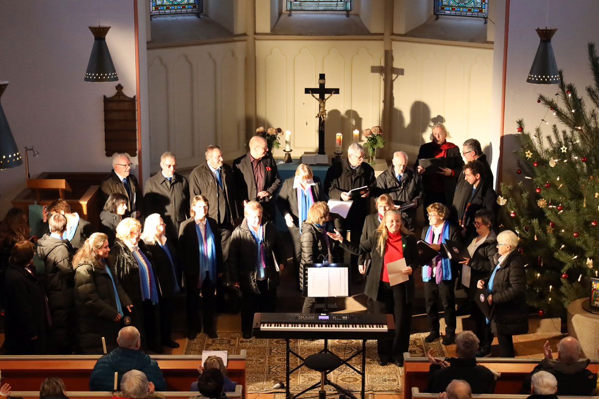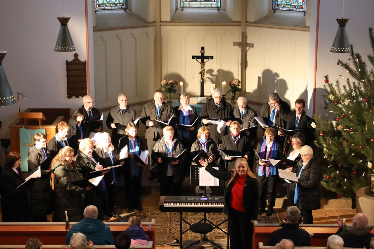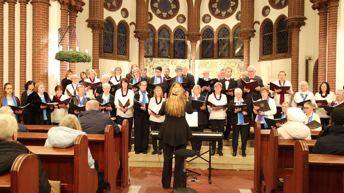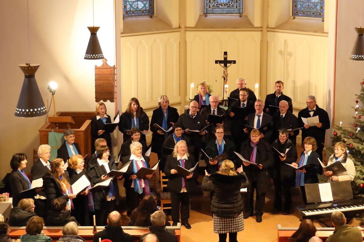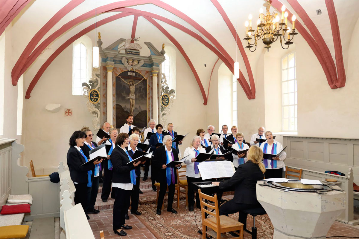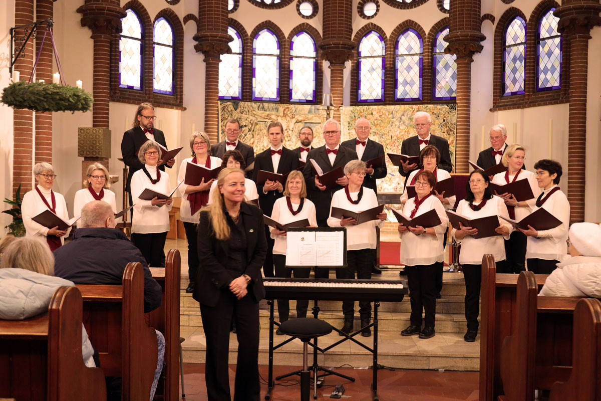 Unser Adventskonzert 2024 am 8. Dezember in der Dorfkirche Hennickendorf (Nuthe-Urstromtal) bot unserem Publikum unter musikalischer Leitung unserer Chorleiterin Irma Heistermann ein festliches und mitreißendes weihnachtliches Programm. Als Gastchor war der Stadtchor Jüterbog dabei, der den ersten Teil des Konzerts bestritt und am Ende für zwei gemeinsame Lieder auf die Bühne zurückkehrte.