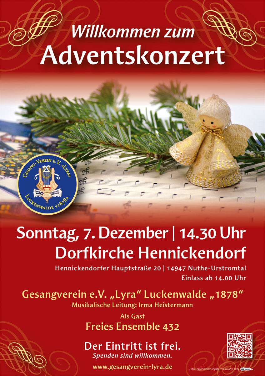 | 07.12. | 14.30 Uhr | Advents-Konzert | Dorfkirche Hennickendorf (Nuthe-Urstromtal) |