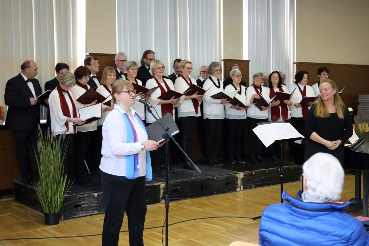 Die Mahlower Frauen eröffneten das Konzert mit stimmungsvollen Liedern, bevor der jubilierende Lyra-Chor übernahm. Als Überraschung aus der Geschichte des Gesangvereins wurde das eigens für unseren Chor geschriebene Lyra-Lied nach vielen Jahren erstmals wieder dargeboten.