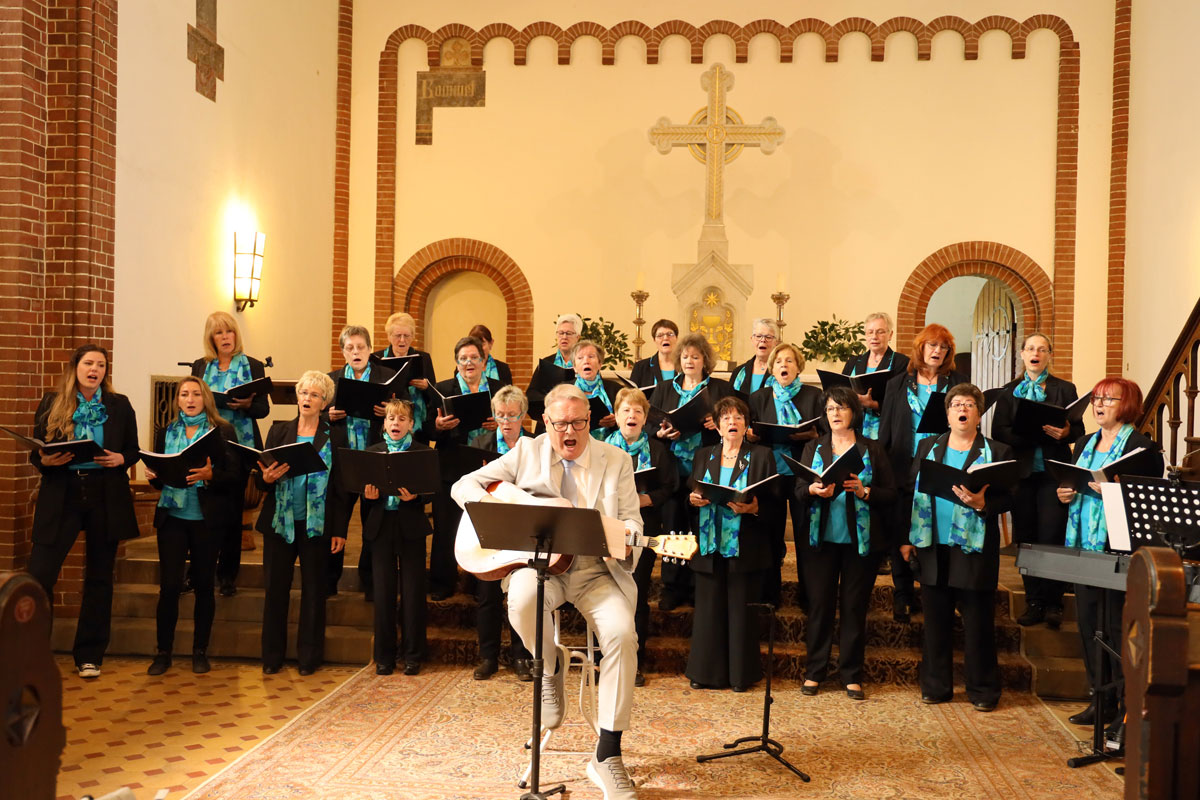 Zunächst durften unsere Gäste, der Frauenchor Mahlow unter Leitung von Hans-Joachim Straub, das Publikum begeistern. Mit Einlagen überraschten zudem eine kleine Gruppe der Lyra-Sängerinnen mit "Ich fühl wie Du" sowie die beiden ChorleiterInnen mit dem musikalischen Duett "All I Ask of You".