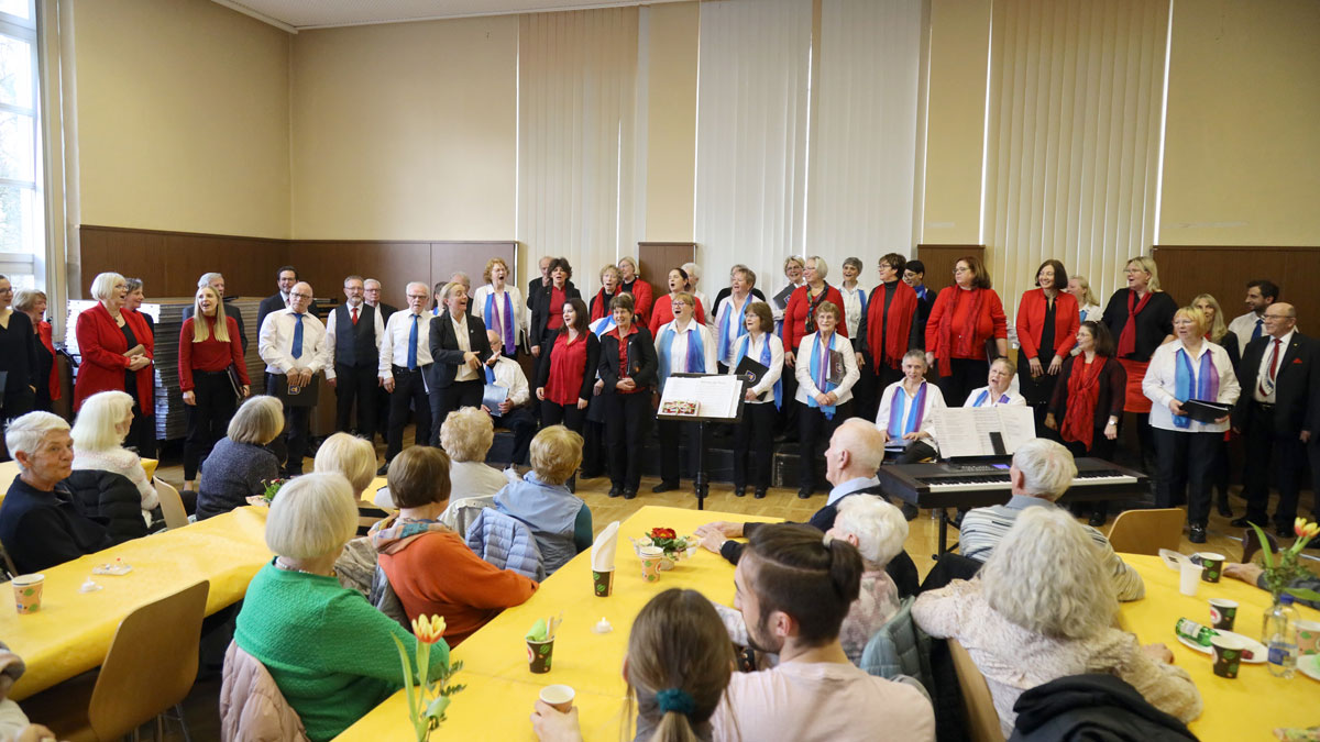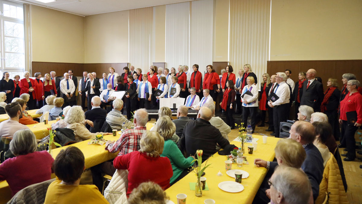 Die vorbereiteten Sitzplätze an den Tischen reichten kaum aus. Fleißige Helfer bewirteten unser Publikum mit Kaffee und von den Chormitgliedern selbst gebackenem Kuchen. Die Veranstaltung war rundum gelungen, wie uns viele Stimmen bestätigten. Wir bedanken und bei allen Beteiligten für ihren Einsatz!
