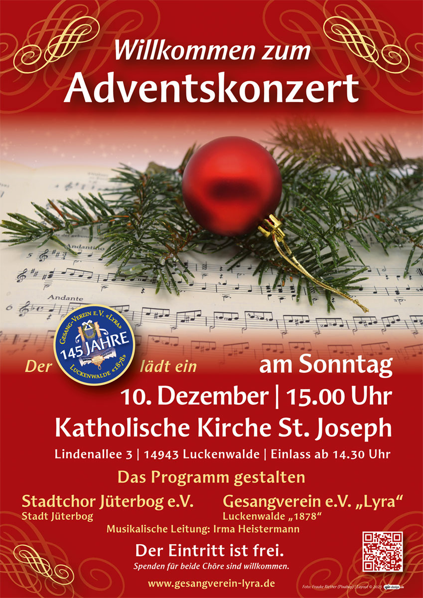 Der Gesang-Verein Lyra Luckenwalde wünscht allen Mitgliedern und den Freunden unseres Gesangs ein frohes Weihnachtsfest und alles Gute für das Jahr 2025!