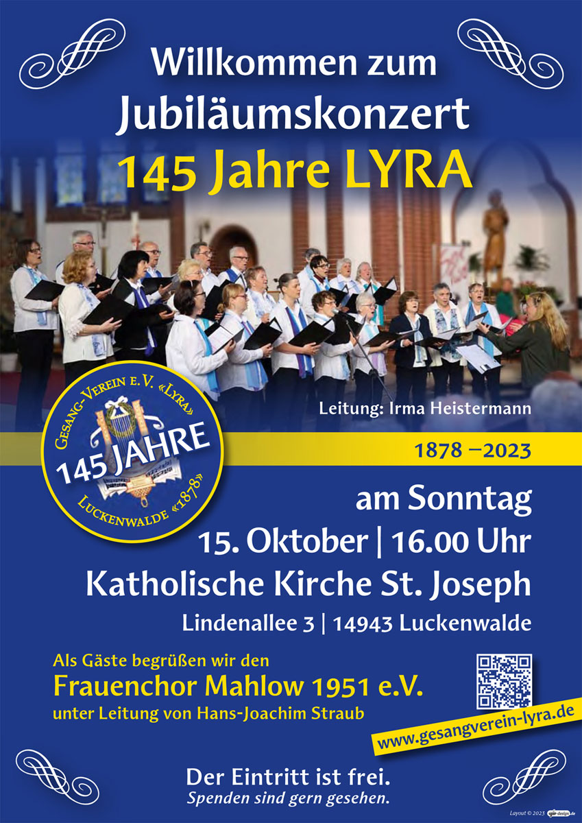 Der Gesang-Verein e.V. «LYRA» Luckenwalde wurde im Jahr 1878 gegründet, also vor 145 Jahren.
